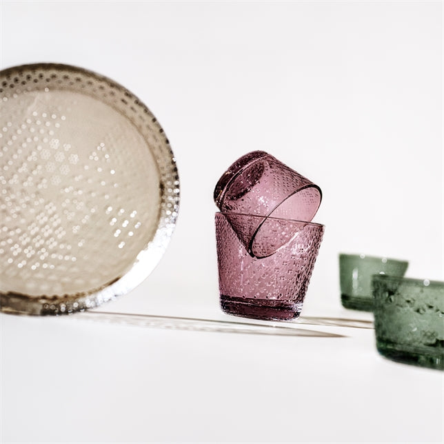 Designed by Oiva Toikka in 1970, the Tundra glassware collection is sophisticated, nostalgic and modern at the same time. The Tundra pattern consists of several smaller patterns inspired by the rugged beauty of Arctic nature. The Tundra tumbler (29 cl) lends an air of fascination to your table setting and is also perfect for special occasions. The beautiful new calluna colour highlights its delicate patterns. The Tundra tumbler (16 cl) makes enjoying your beverage of choice a special moment. A set includes two Tundra tumblers made at the Iittala glass factory in Finland.