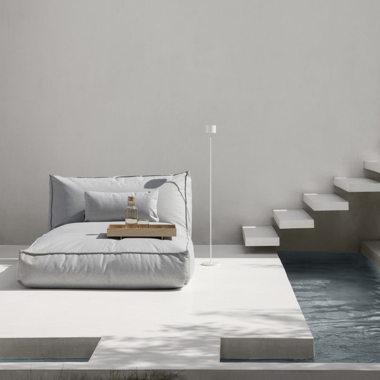 STAY The blomus Day Bed Outdoor Patio Lounger tempts you to stay and enjoy the warm season outdoors. The low-lying outdoor lounger made of water-repellent material promises ultimate relaxation.The high-quality weatherproof textile is easy to care for and UV resistant. The cushion filling, made of environmentally neutral EPS pearls, stabilizes the lounger's volume and shape. Due to the lightweight materials used to make STAY, the furniture can be easily moved on the terrace or in the garden. The robust double layer premium bottom improves longevity and prevents mold.