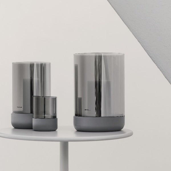 CALMA Hurricane Lamps are beautiful outdoor or indoor ambient accent. Perfect for adding just a bit of light to any space. Features a white concrete base and clear glass hurricane. Lamp includes one candle. 5.9" x 5.9" x 8.9" / 15 x 22.5cm