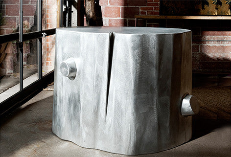 FAUX BOIS GIANT STUMP TABLE by George Sacaris Studio After visiting a south Texas farm and seeing a concrete faux bois bench made by a friend's grandfather, George returned to his studio inspired. The result is this collection of hand formed aluminum stumps- constructed without patterns. The limbs and shapes vary making each one unique, calling to mind a landscape of logs and stumps having a modern permanence. Ideal for indoor and outdoor use. Please contact us for custom colors and finishes. Dimension: 30" h. x 36" d. This is a made-to-order item; no returns allowed/final sale.