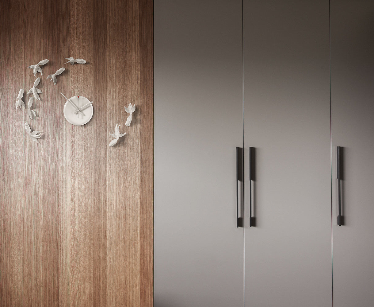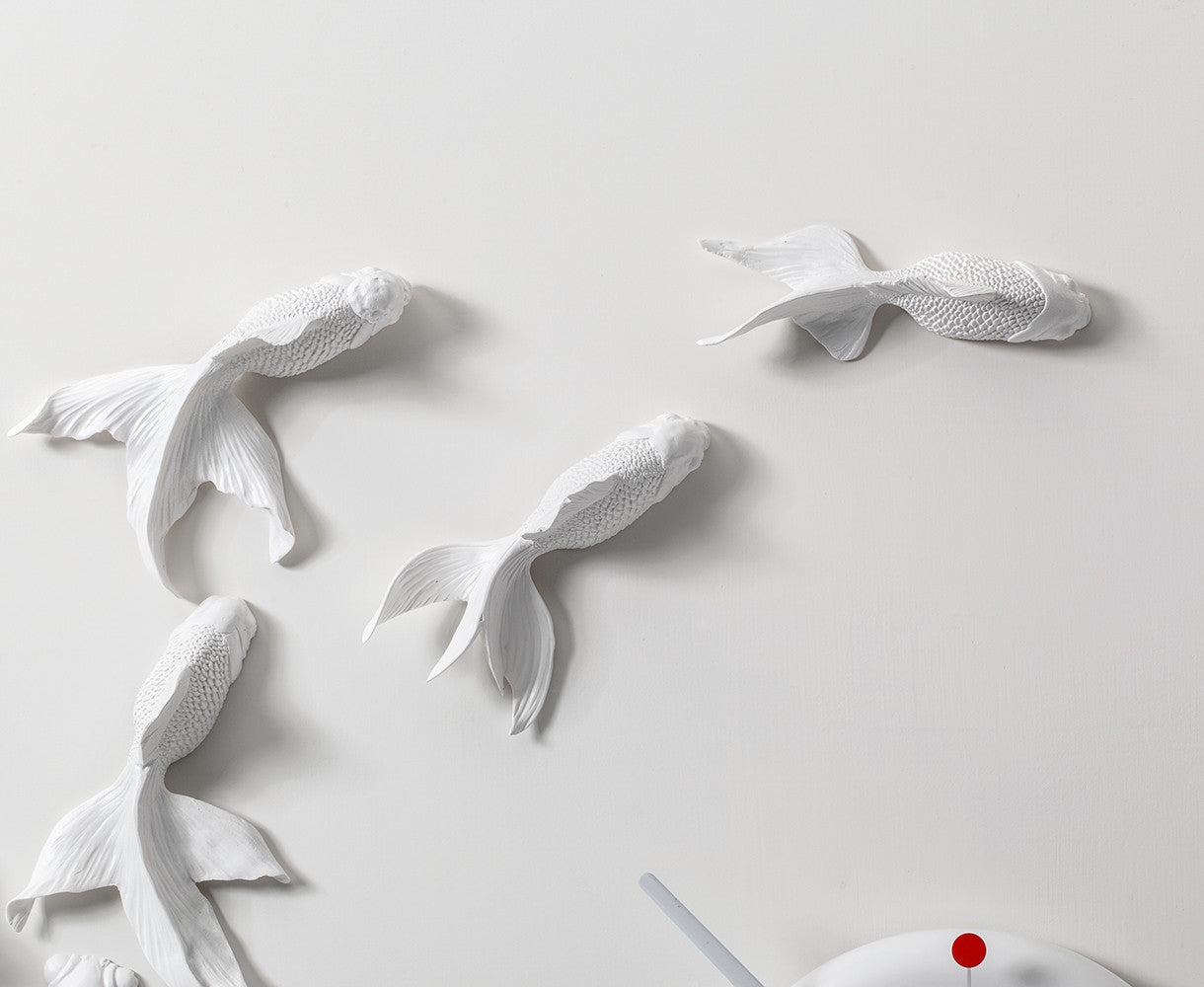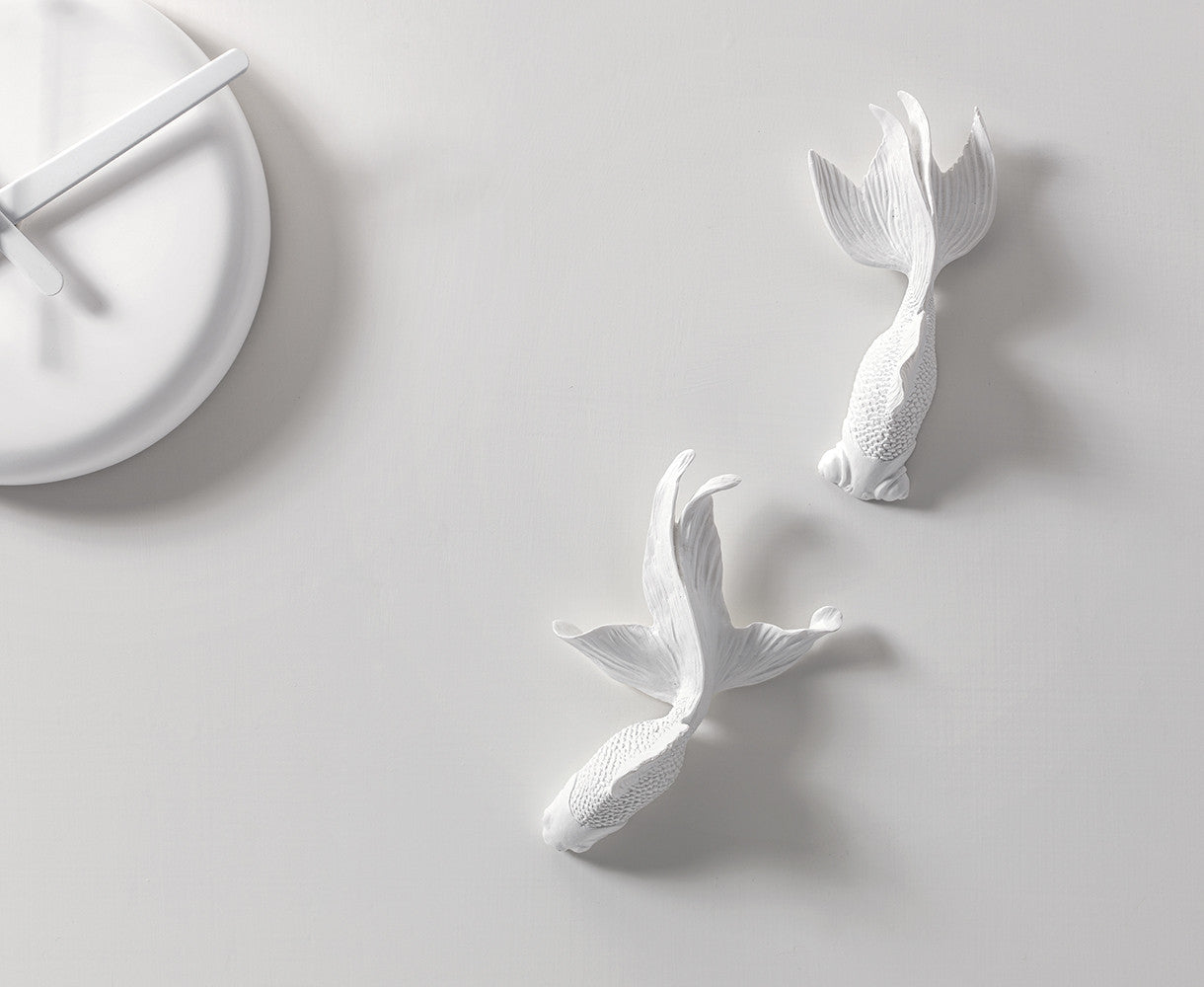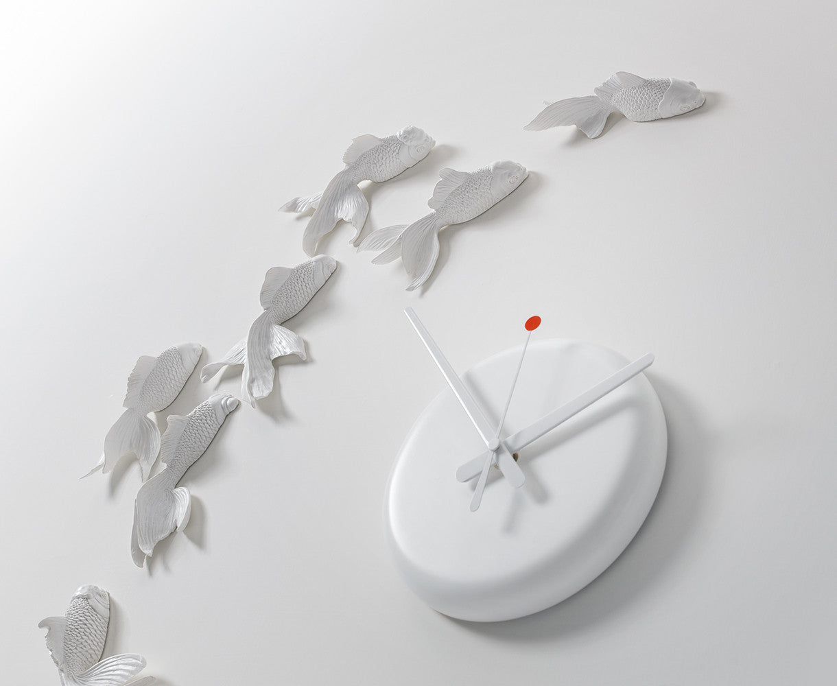 Material:Resin/Taiwan Movement.Dimensions: W100mm × D650mm × H650mmDesigner: Haoshi DesignHaoshi Goldfish X CLOCK collects nine leisurely swimming goldfish. In Eastern culture, number nine means flourishing fortune. The goldfish represents lucky and rich. Nine goldfish are a symbol of permanent good fortune and luck. Goldfishes swim freely with their beautiful long tails, in gestures of delicacy and elegance. They swim with no rush, they swim away from all earthly noise. Their elegant rhythm freezes the moment into forever. On haoshi Goldfish Clock floats both passing time and static goldfish. As time goes by, shadows dance and change underneath the sun. Between move and still, reality and dream, the goldfish clock would record the happiness with you in ever single second.Installation:The back of each goldfishs tail is numbered. Please tear off the adhesive tape and paste it on the marks in order.Tear off the adhesive tape from the back of the position marker chart. Lead the tape through the core and paste it on the wall.