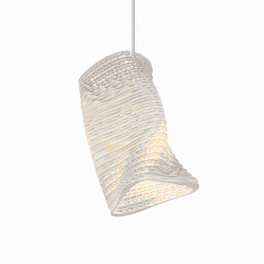 Using custom-made entirely white corrugated cardboard, Scraplights White shades abstract and elevate the layered cardboard aesthetic that Graypants has been carefully evolving since their beginning. This radical departure from the traditional Scraplights line is precision cut by advanced machinery, assembled by hand using non-toxic adhesive, and treated with a non-toxic fire retardant coating.