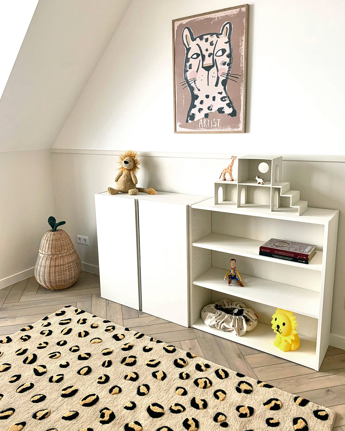 Make your kid's room an animal kingdom with the rectangle shaped leopard rug 120 x 180 cm available in different sizes. A super-soft fairtrade rug with 3D leopard pattern that pops out due to the different pile heights. Hand-tufted and hand carved from 100% New Zealand wool by artisans in India. Make a statement with this cool woolen kids rug that fits any child's room.