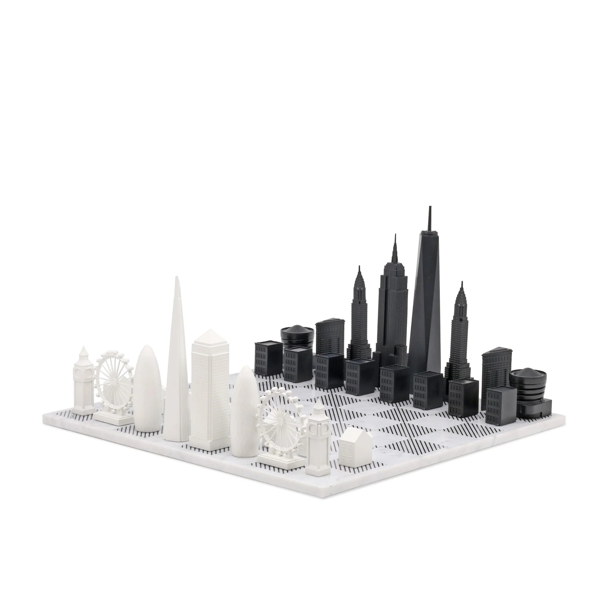 Skyline Chess Set Acrylic London Vs New York Edition with Marble Hatch Board