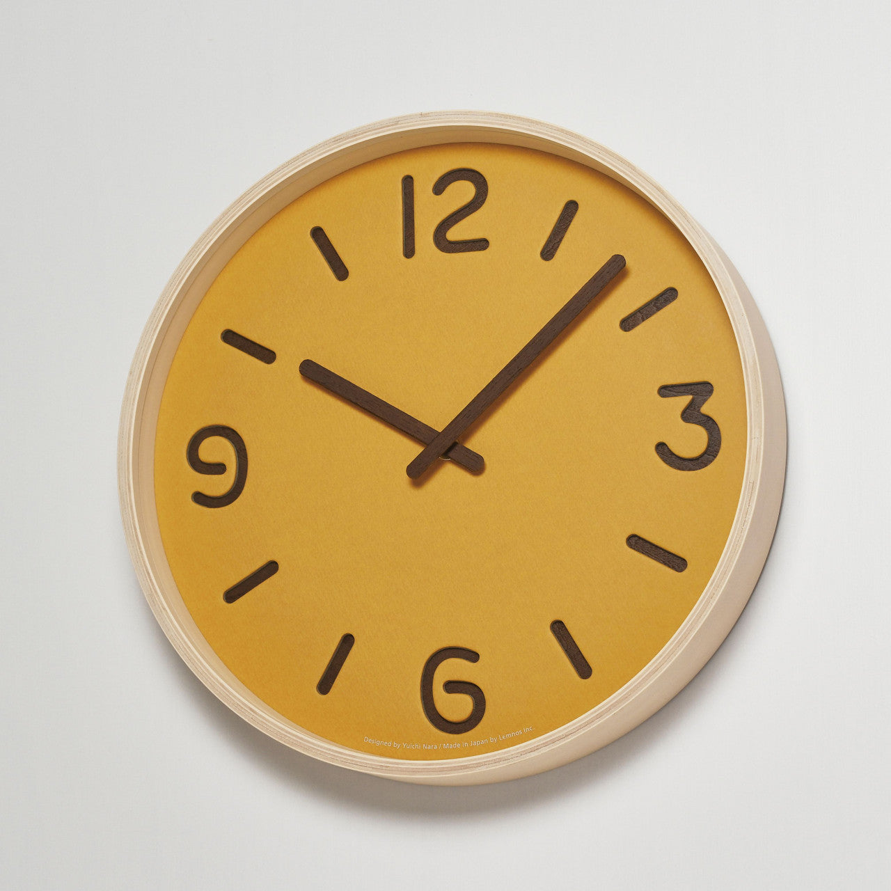 The face of Lemnos Thomson clocks is made with a special die-cutting machine which is also used for manufacturing puzzles. This die-cutting technique can make complicated shapes by stamping out from paper or wood using a mold out of thin steel blade fixed onto a wooden board.