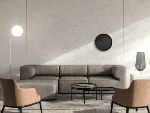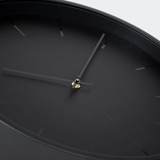 Let the light set the tone with the minimalist Huygens Tone collection. The ton-sur-tone effect of the Huygens Tone wall clock is created by printing a glossy transparent spot varnish onto the matte black dial. The wall clock is equipped with a smooth and silent movement, making it the ideal companion in a space designed for living, sleeping or working. The Huygens Tone displays a minimalist index clock face.